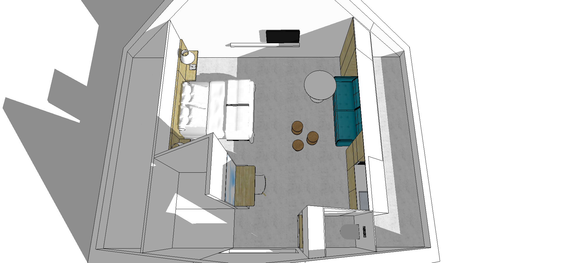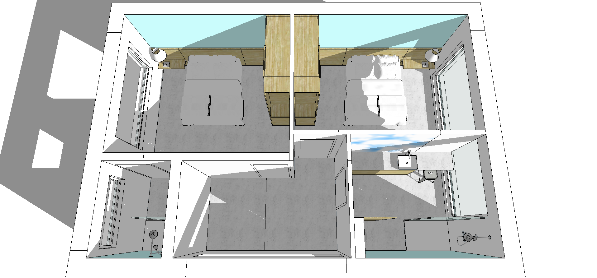 - Canada: Slaapkamer met dubbel bed (1,80m x 2,10m) of 2 twinbedden, tv, safe, aanpalende kleine badkamer met toilet en inloopdouche